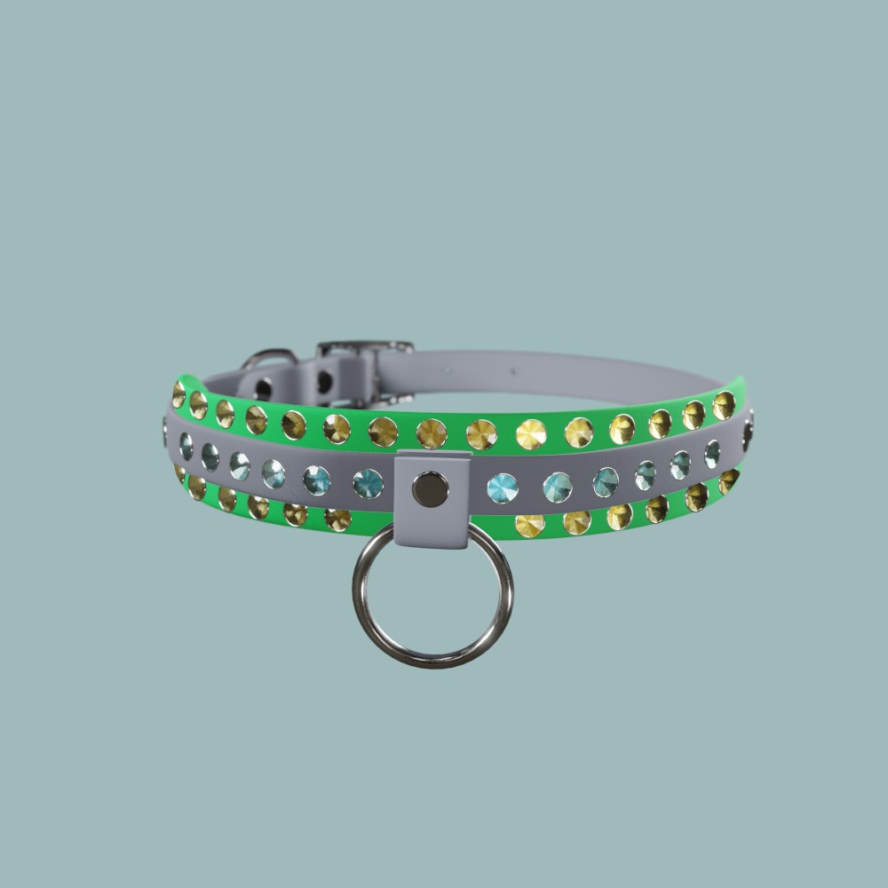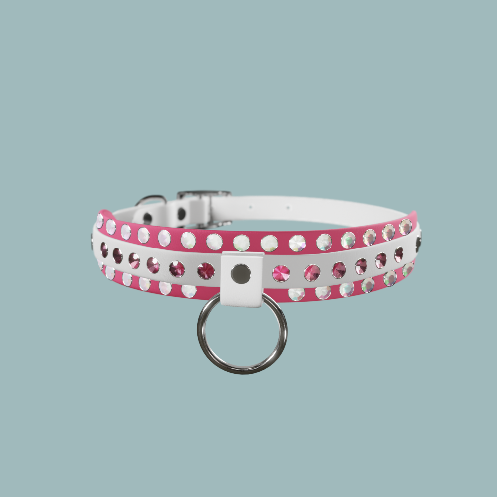 Here you may gaze upon and adore the beautifully hand select and crafted, favorite Small O-Drop Bling AF Collar model of Ms. Elizabeth herself!